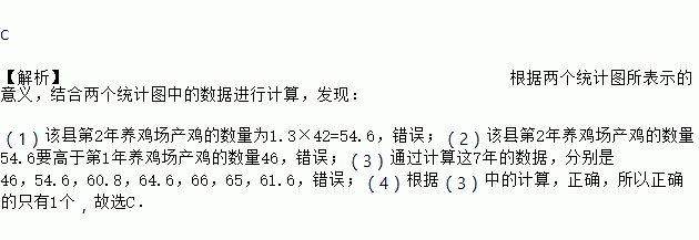 ¼×¡¢ÒÒÁ½ÈËÁ¬Ðø7Äêµ÷²éÄ³ÏØÑø¼¦ÒµµÄÇé¿ö£¬ÌṩÁËÁ½·½ÃæµÄÐÅϢͼ£¨Èçͼ£©£®¼×µ÷²é±íÃ÷£ºÑø¼¦³¡µÄƽ¾ù²ú¼¦Êý´ÓµÚ1ÄêµÄ1ÍòÖ»ÉÏÉýµ½µÚ7ÄêµÄ2.8ÍòÖ»£»ÒÒµ÷²é±íÃ÷£ºÑø¼¦³¡µÄ¸öÊýÓɵÚ1ÄêµÄ46¸ö¼õÉÙµ½µÚ7ÄêµÄ22¸ö£®ÏÖ¸ø³öÏÂÁÐËĸöÅжϣº¢Ù¸ÃÏØµÚ2ÄêÑø¼¦³¡²ú¼¦µÄÊýÁ¿Îª1.3ÍòÖ»£»¢Ú¸ÃÏØµÚ2ÄêÑø¼¦³¡²ú¼¦µÄÊýÁ¿µÍÓÚµÚ1ÄêÑø¼¦³¡²ú¼¦µÄÊýÁ¿£»¢Û¸ÃÏØÕâ7ÄêÑø¼¦³¡²ú¼¦µÄÊýÁ¿ÖðÄêÔö³¤£»¢ÜÕâ7ÄêÖУ¬µÚ5Äê¸ÃÏØÑø¼¦³¡³ö²ú¼¦µÄÊýÁ¿×î¶à£®¸ù¾Ý¼×¡¢ÒÒÁ½ÈËÌṩµÄÐÅÏ¢£¬¿ÉÖªÆäÖÐÕýÈ·µÄÅжÏÓУ¨¡¡¡¡£©