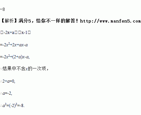 若(-2x+a)(x-1)的结果中不含x的一次项,则a3=________.