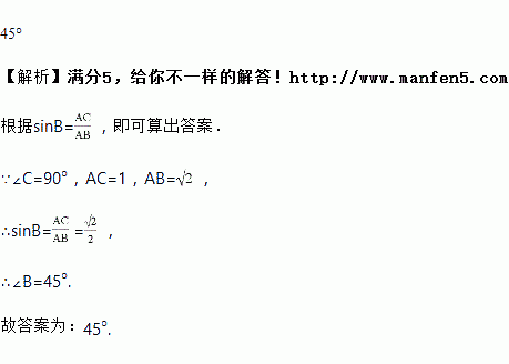 在△ABC中,∠C=90°,AC=1,AB=,则点B的度数是____.