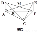 (2)将图1中的△BCE绕点B旋转,当A,B,E三点在同一条直线上时(如图2),求证:△CAN为等腰直角三角形.