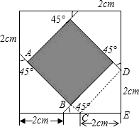 分析:延长小正方形的一边交大正方形于一点,连接此点与距大正方形顶点2cm处的点,构造直角边长为2的等腰直角三角形,将小正方形的边长转化为等腰直角三角形的斜边长来求解即可.