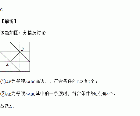 如图所示的正方形网格中,网格线的交点称为格点.已知A,B是两格点,如果C也是图中的格点,且使得△ABC为等腰三角形,则点C的个数是