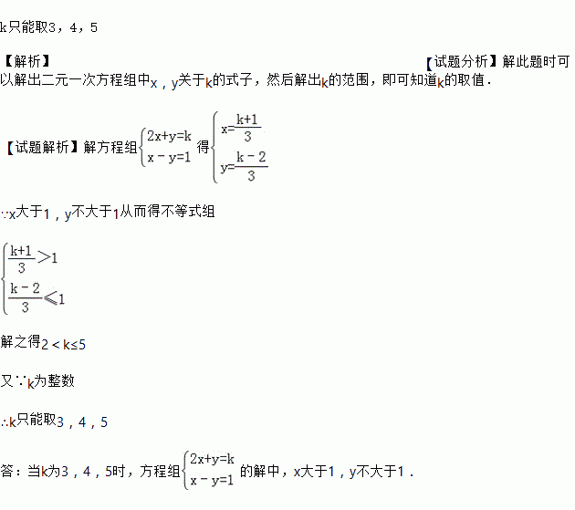 的解中,x大于1,y不大于1,若存在,求出k的值,若不存在,说明理由.