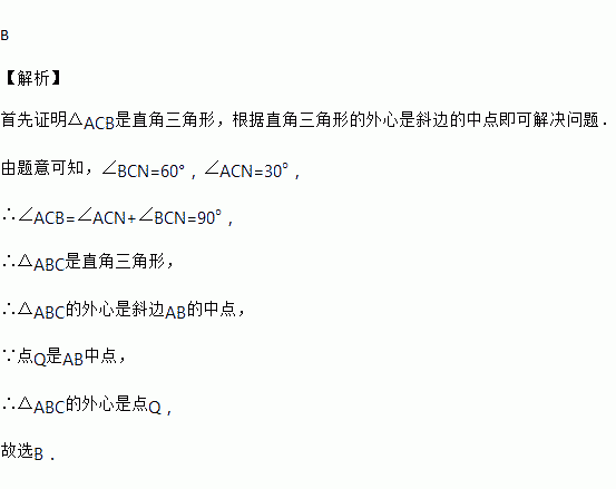 如图,在等边三角形网格中,△ABC的顶点都在格点上,点P,Q,M是AB与格线的交点,则△ABC的外心是( )