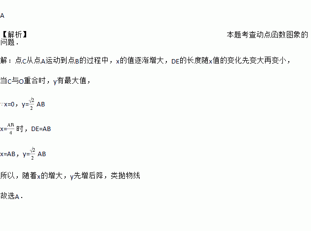 如图,C为⊙O直径AB上一动点,过点C的直线交⊙O于D,E两点,且∠ACD=45°,DF⊥AB于点F,EG⊥AB于点G,当点C在AB上运动时,设AF=x,DE=y,下列中图象中,能表示y与x的函数关系式的图象大致是