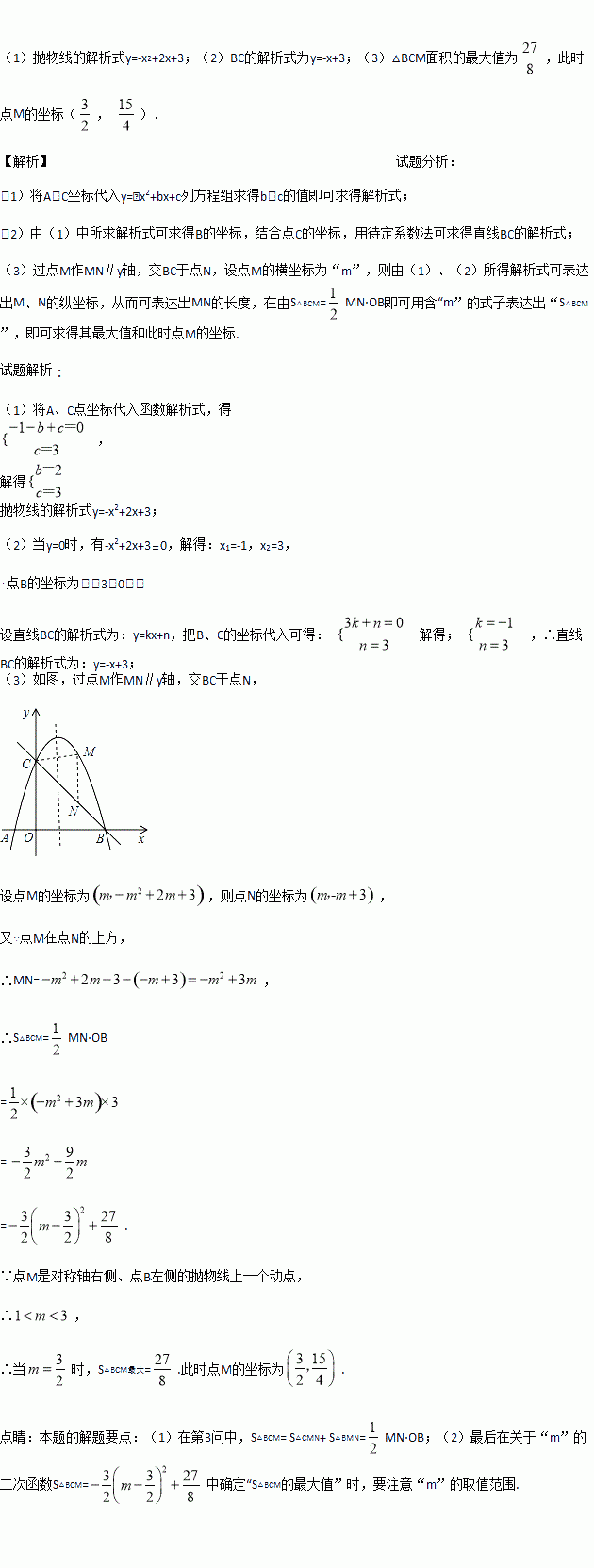 (3)点M是对称轴右侧点B左侧的抛物线上一个动点,当点M运动到什么位置时,△BCM的面积最大?求△BCM面积的最大值及此时点M的坐标.