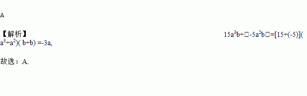 A 【解析】15a3b÷(-5a2b)=[15÷(-5)]( a3÷a2)( b÷b) =-3a, 故选:A.