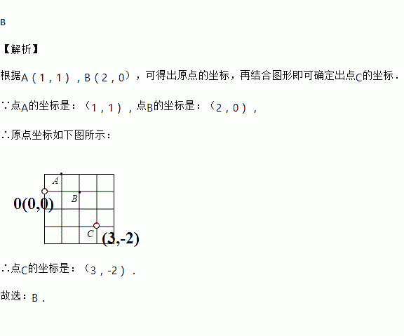 如图在正方形网格中,若A(1,1),B(2,0),则C点的坐标为( )