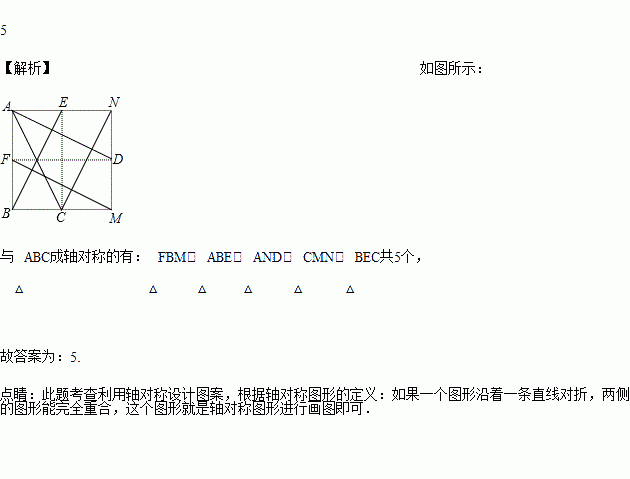 如图,在2×2的正方形格纸中,有一个以格点为顶点的△ABC,请你找出格纸中所有与△ABC成轴对称且也以格点为顶点的三角形,这样的三角形共有___________个.