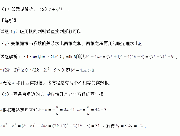 当的斜边长,且两条直角边b和c恰好是这个方程的两个根时,求的周长.