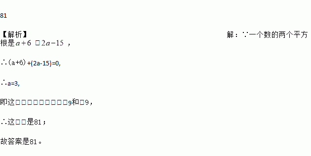 如果一个数的平方根是a+6和2a﹣15,则这个数为________.