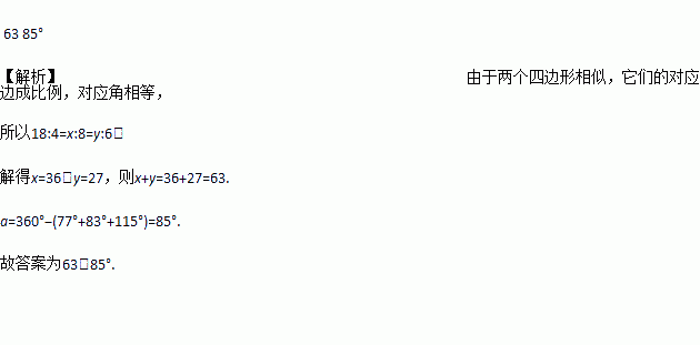 图中的两个四边形相似,则=______,a=______.
