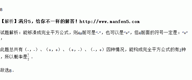 在a2□4a□4的空格□中,任意填上“+”或“﹣”,在所有得到的代数式中,能构成完全平方式的概率是( )