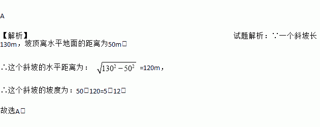 如图,一个斜坡长130m,坡顶离水平地面的距离为50m,那么这个斜坡的坡度为( )