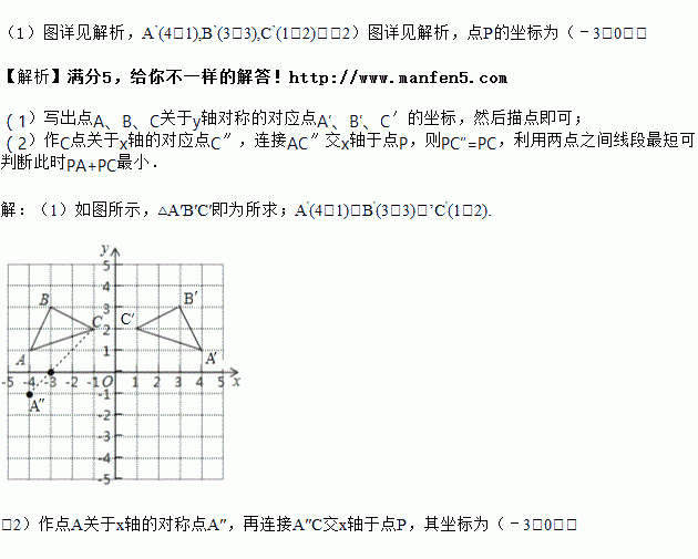 (2)在x轴上画出点P,使PA+PC最小.(不写作法,保留作图痕迹)