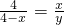 ∵AB=BC=4BP=xCQ=y,