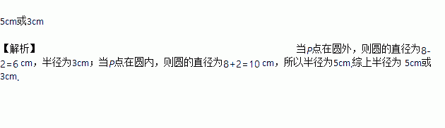 若点P到⊙O圆周上的最大距离为8cm,最小距离为2cm,则⊙O的半径为______________.