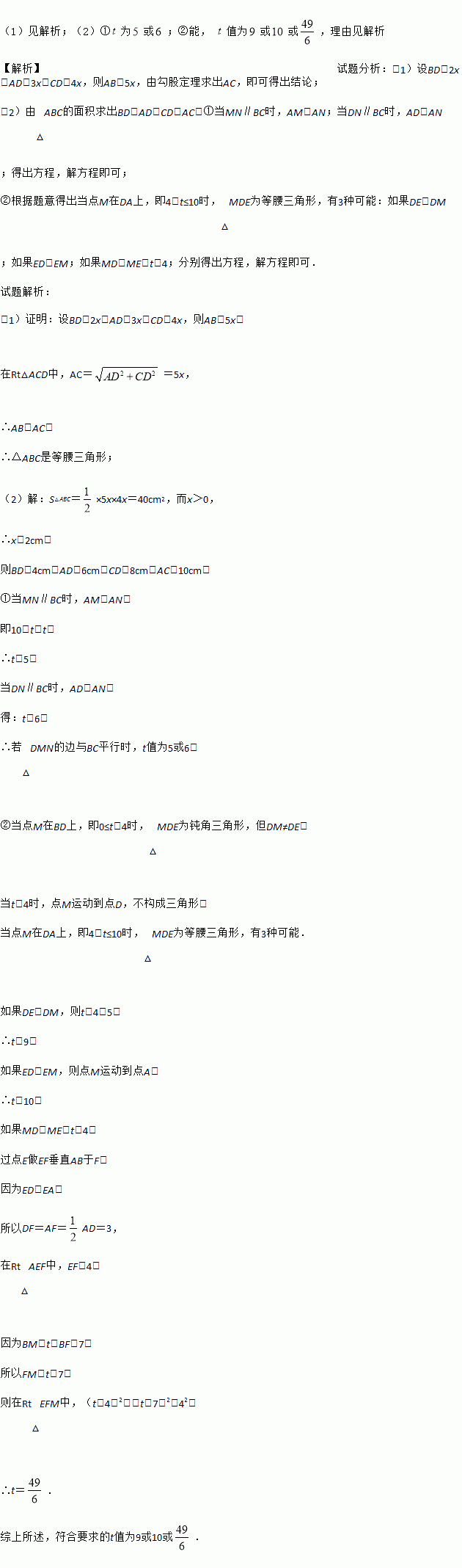 能否成为等腰三角形?若能,求出