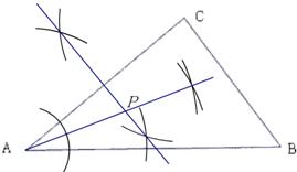 分析:如图,由于P按照设计要求,在△ABC的内部,且到A、C的距离必须相等,因此确定P在线段AC的垂直平分线上,又P到两条道路AC、AB的距离也必须相等,由此确定P在∠CAB的平分线上,所以P是线段AC的垂直平分线和∠CAB的平分线的交点.