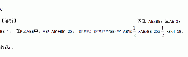 如图,正方形ABCD中,AE垂直于BE,且AE=3,BE=4,则阴影部分的面积是( )