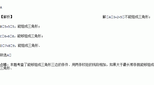 下列长度的三条线段首尾连接不能组成三角形的是( )