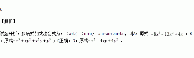 A.(-4x)·(2x2+3x-1)=-8x3-12x2-4x