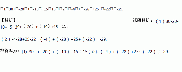 (1)30-20-10+15=____________________=_______;