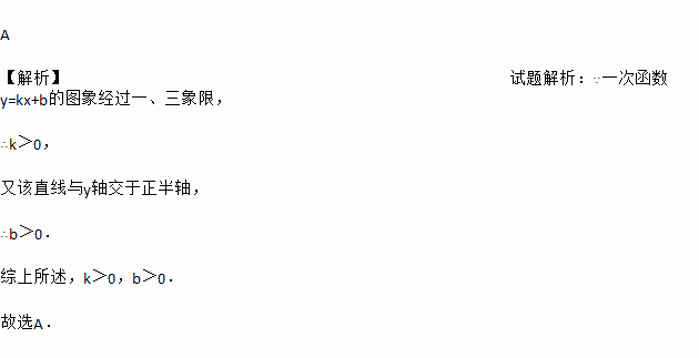 A. k>0,b>0 B. k>0,b<0 C. k<0,b>0 D. k<0,b<0
