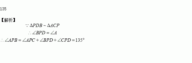 如图5,点C、D在线段AB上,且CD是等腰直角△PCD的底边.当△PDB∽△ACP时(P与A、B与P分别为对应顶点),∠APB=____°.