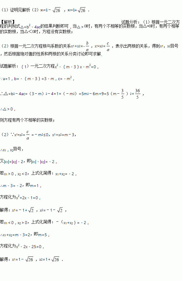 (2)设这个方程的两个实数根为x1,x2,且|x1|=|x2|﹣2,求m的值及方程的根.