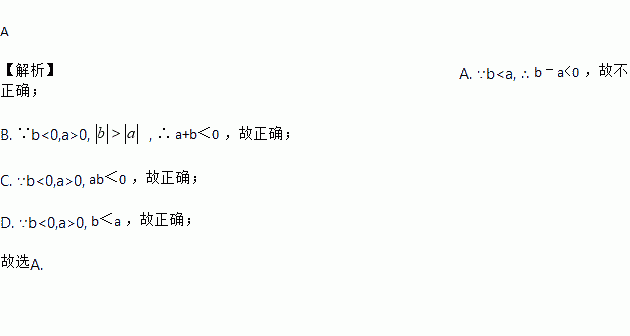 A. b﹣a>0 B. a+b<0 C. ab<0 D. b<a