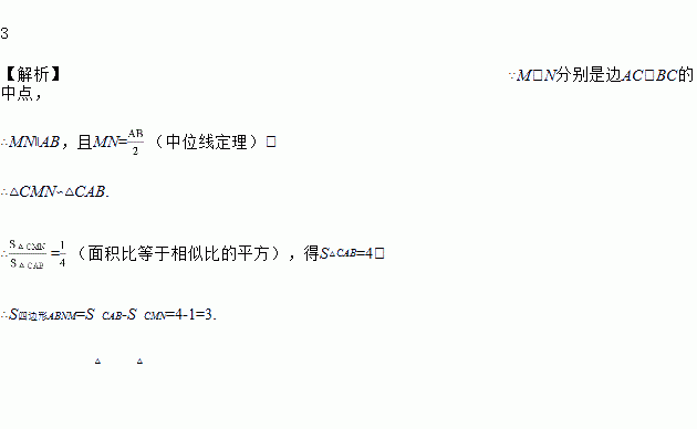如图,在△ABC中,M、N分别为AC、BC的中点.若S△CMN=1,则S四边形ABNM=________.