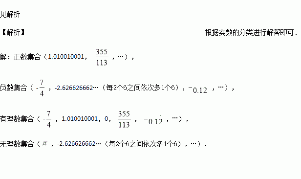 有理数集合:( …); 无理数集合:( …).