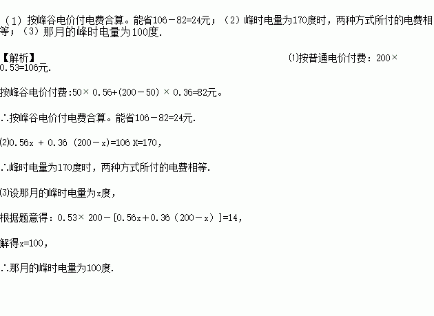 ¢Çµ½ÏÂÔ¸¶·Ñʱ, СÃ÷·¢ÏÖÄÇÔÂ×ÜÓõçÁ¿Îª200¶È£¬Ó÷å¹Èµç¼Û¸¶·Ñ·½Ê½±ÈÆÕͨµç¼Û¸¶·Ñ·½Ê½Ê¡ÁË14Ôª£¬ÇóÄÇ