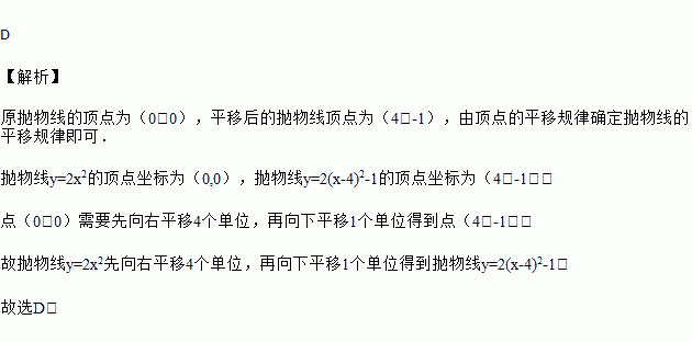 将抛物线y=2x2如何平移可得到抛物线y=2(x﹣4)2﹣1( )