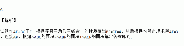△ABC中,AB=AC=5,BC=8,点P是BC边上的动点,过点P作PD⊥AB于点D,PE⊥AC于点E,则PD+PE的长是( )