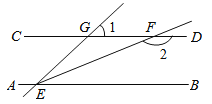 如图,已知直线AB∥CD,∠GEB的平分线EF交CD于点F,∠1=42°,则∠2=_______.