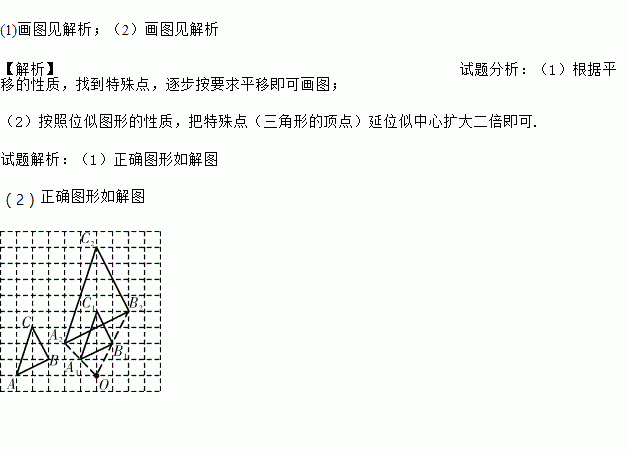 (2)以图中的O为位似中心,将△A1B1C1作位似变换且放大到原来的两倍,得到△A2B2C2.(在网格纸中作图)