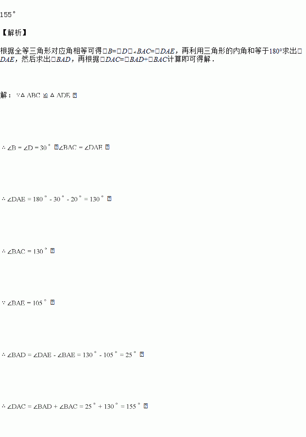 已知如图,≌,,,,求、的度数.