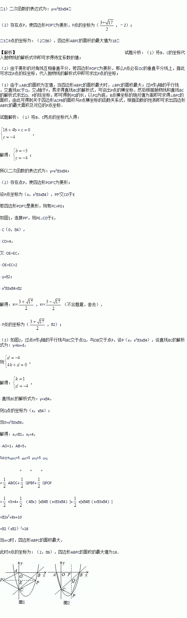 如图,在平面直角坐标系中,二次函数y=x2+bx+c的图象与x轴交于A、B两点,A点在原点的左侧,B点的坐标为(4,0),与y轴交于C(0,﹣4)点,点P是直线BC下方的抛物线上一动点.