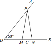 分析 作PC⊥OB于点C,根据等腰三角形的性质得到MC=CN,根据直角三角形的性质得到OC=$\frac{1}{2}$OP=5,求出MC的长,得到答案.