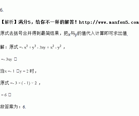 先化简再求值:﹣(x2﹣y2)﹣[3xy﹣(x2﹣y2)],其中x=﹣1,y=2.