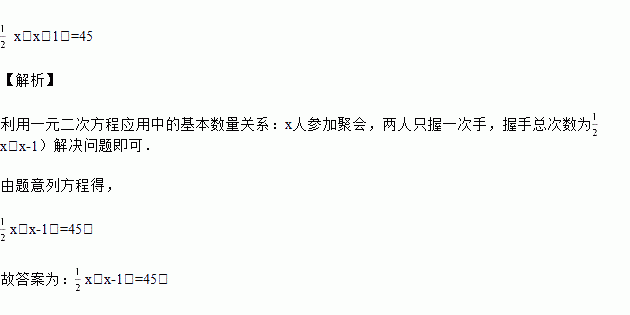 参加一次同学聚会,每两人都握一次手,所有人共握了45次,若设共有x人参加同学聚会.列方程得____.