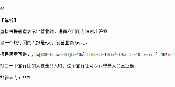 某旅行社组团去外地旅游,30人起组团,每人单价800元.旅行社对超过30人的团给予优惠,即旅行团的人数每增加一人,每人的单价就降低10元.当一个旅行团的人数是______人时,这个旅行社可以获得最大的营业额.