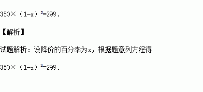 某家用电器经过两次降价,每台零售价由350元下降到299元.若两次降价的百分率相同,设这个百分率为x,则可列出关于x的方程为 .
