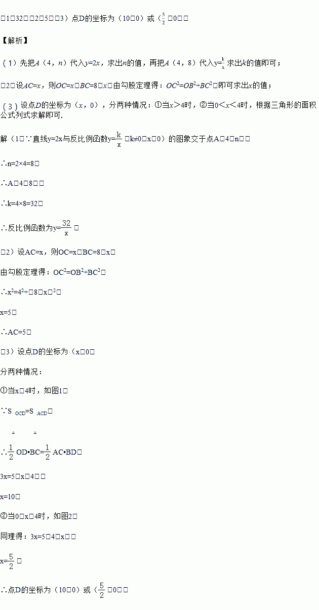 (3)点D为x轴正半轴上一点,在(2)的条件下,若S△OCD=S△ACD,求点D的坐标.