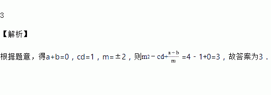 若a 、b互为相反数,c、d 互为倒数,m的绝对值为2,则代数式的值为 .