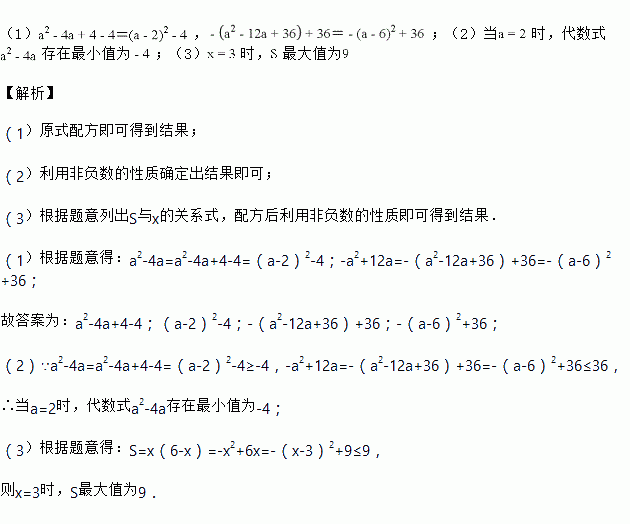 (2)探究:当a取不同的实数时在得到的代数式a2﹣4a的值中是否存在最小值?请说明理由.