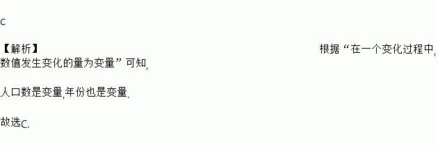 C 【解析】根据“在一个变化过程中,数值发生变化的量为变量”可知, 人口数是变量,年份也是变量. 故选C.