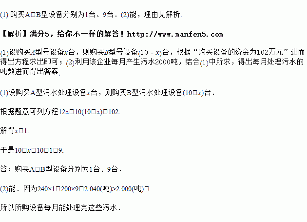 (2)若每月产生污水2 000吨,问所购设备每月能否处理完这些污水?为什么?